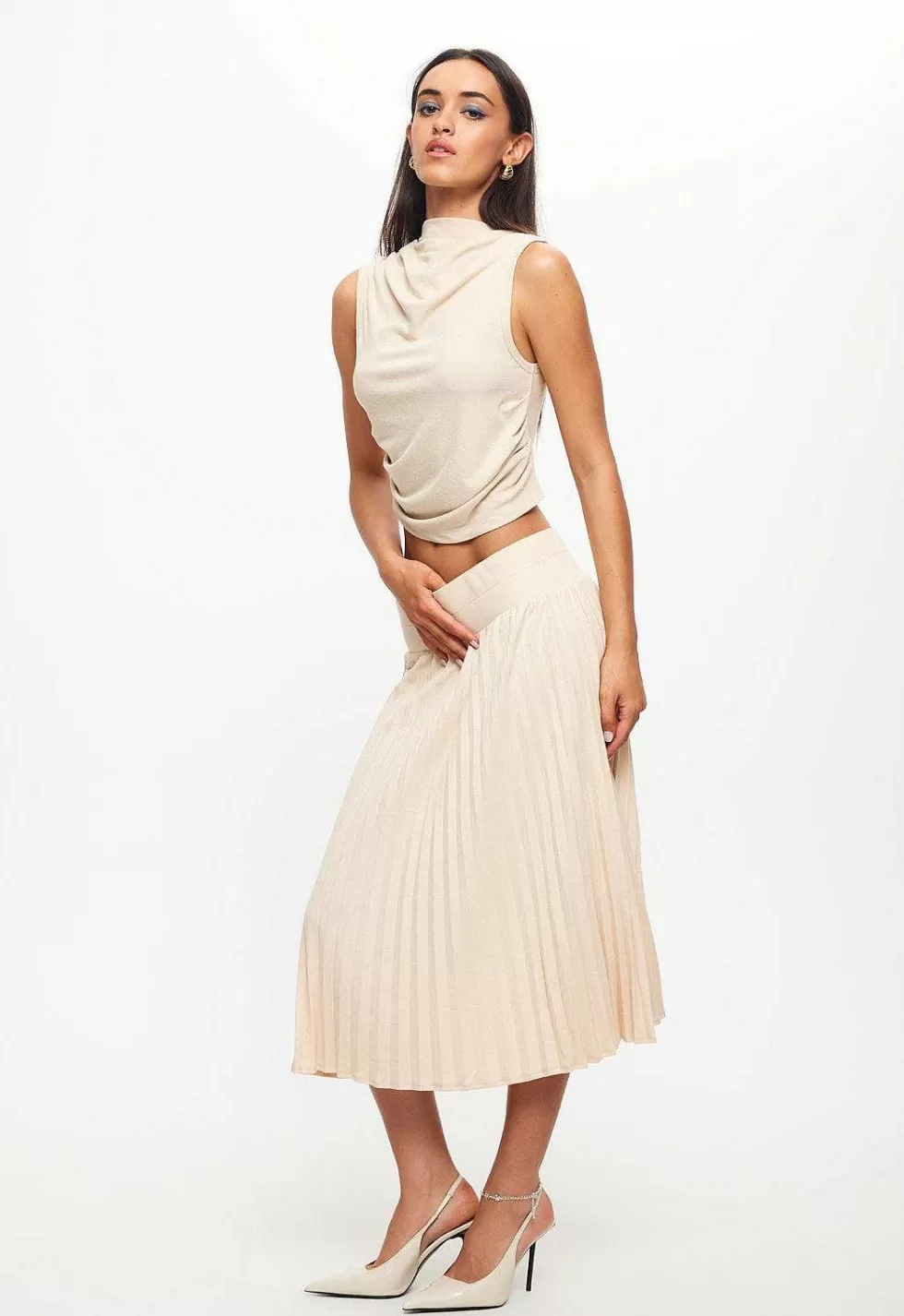 A Marilyn Moment.Sydney Pleat Skirt Features:Item Runs True To SizeWide WaistbandPleatedMidi Length75% Viscose 17% Polye…